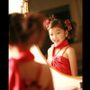 セレクトした衣装にあわせて控え室でヘアメイク。